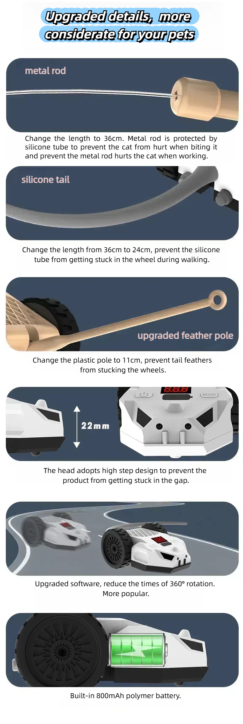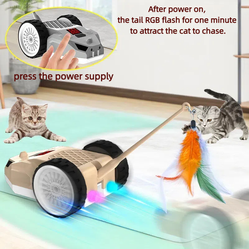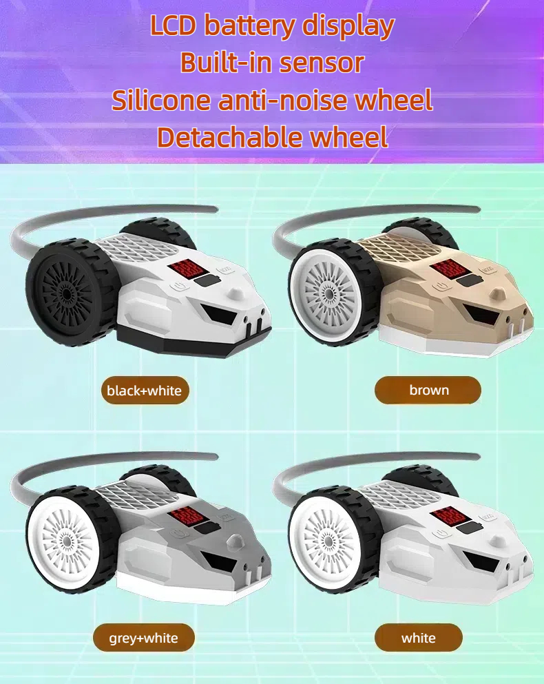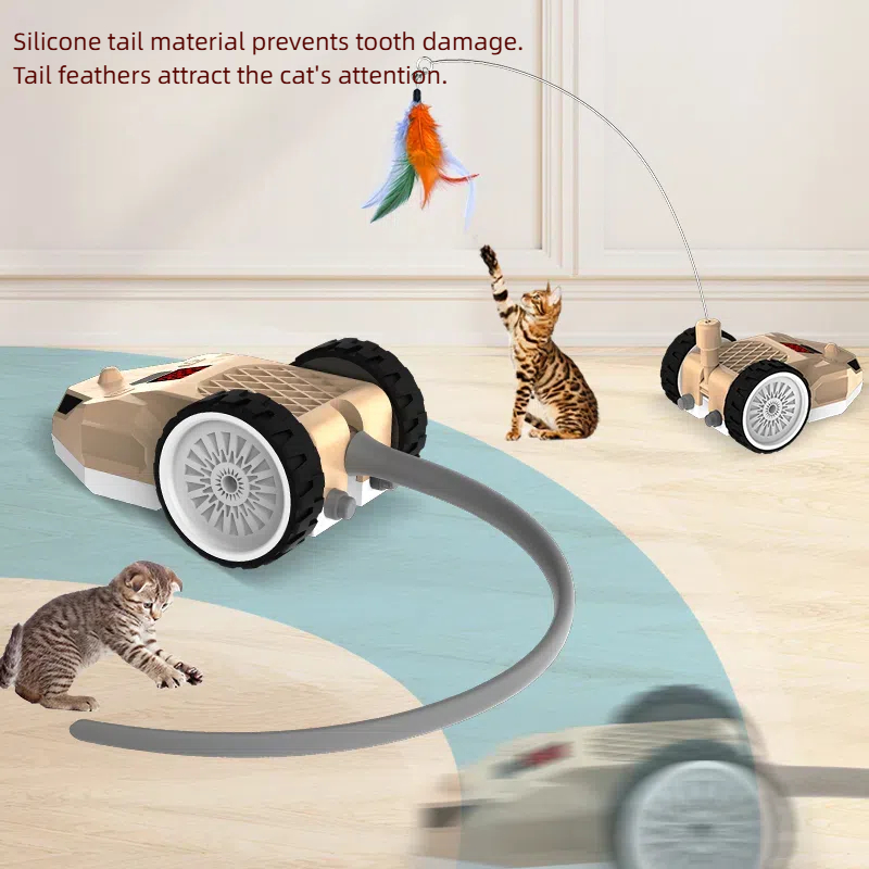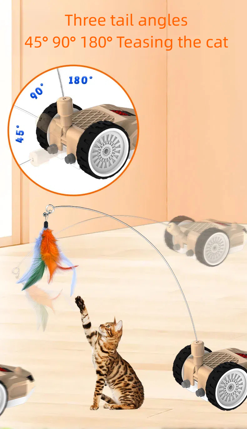 Features: The tail part of the product can be changed into a metal rod feather tickle stick, a plastic rod feather tickle stick, and a silicone tail according to the cat's preferences. The RGB light flickers, the speed is adjustable, the S-shaped moving attracts the cat to chase, automatically avoids obstacles, the remote control + manual dual control.